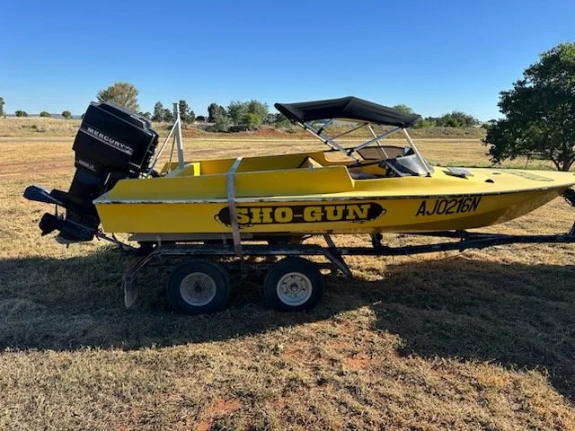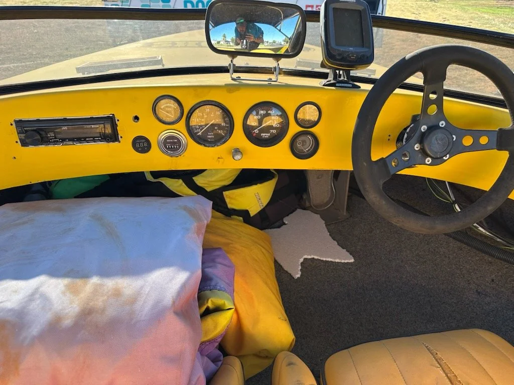 Great runabout ski boat with a 150HP motor. Plenty of power for tubing, skiing, wakeboards or just cruising the river with family and mates. Bright yellow hull looks great on the water and is easy to see.